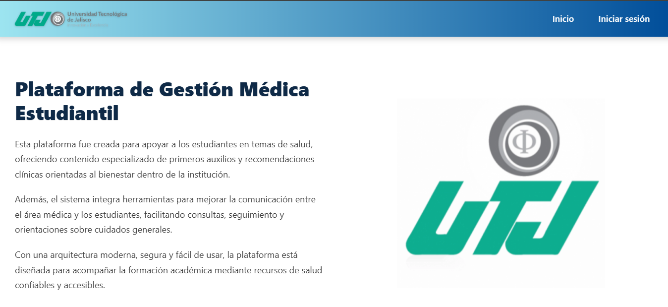 Plataforma desarrollada con Angular para la gestión de pacientes, citas médicas y generación de justificantes en la Universidad Tecnológica de Jalisco.