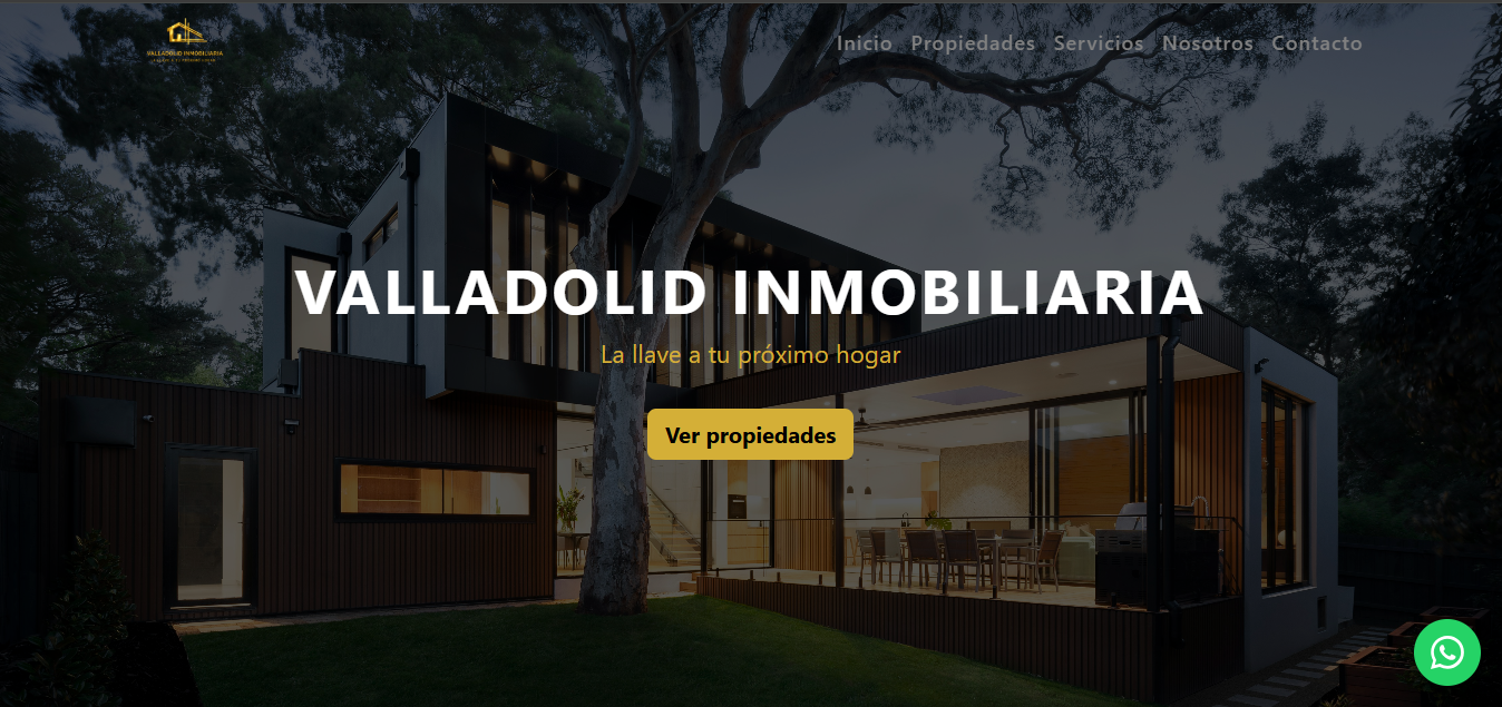 Sitio web informativo desarrollado para una inmobiliaria, con diseño moderno, secciones de propiedades destacadas, servicios y contacto directo mediante WhatsApp.